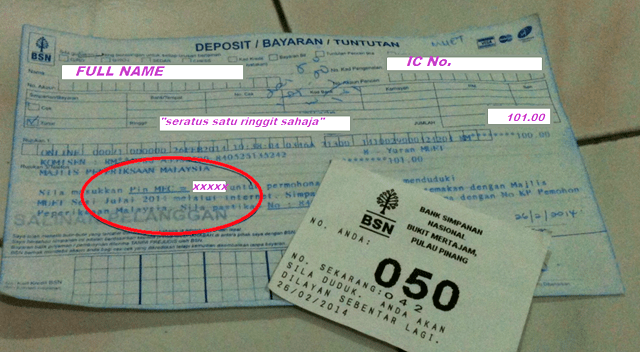 Calon adalah dinasihatkan untuk membeli dahulu nombor pin dari cawangan bank . Kaedah pembelian no pin mec.